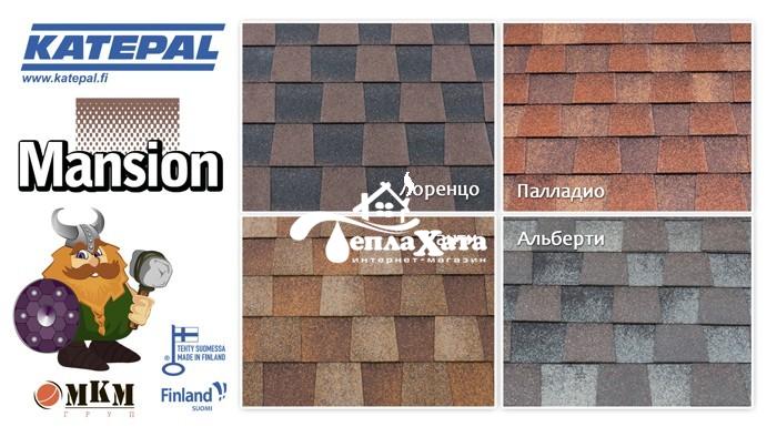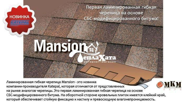 Ламинированная гибкая черепица Mansion – это новинка компании-производителя Katepal, которая отличается от представленных на рынке аналогов черепицы.На оборотной стороне кровельных плиток имеется клейкий край, который обеспечивает стойкую фиксацию к настилу и превосходную влагонепроницаемость.