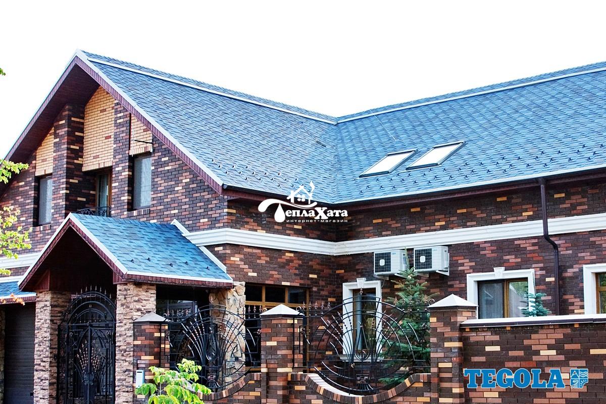 Мягкая черепица Готик – отличный вариант для тех, кто предпочитает нестандартные дизайнерские решения. Коллекция отличается оригинальной формой гонта, не характерной для остального модельного ряда. Каждый гонт мягкой черепицы имеет три лепестка разного размера прямоугольной формы. Такая особенность и монтаж внахлест дает возможность получить кровельное покрытие с нестандартным рисунком с визуальным эффектом объемности. Красивейшие природные оттенки покрытия позволяет кровельному покрытию гармонично вписаться в ландшафт. Неповторимая игра света возникает благодаря чередованию темных и светлых оттенков цвета на лепестках.В форме нарезки Тегола Готик предлагается семь цветов: Красный гранит, Береста, Осенний клен, Кедр, Альпийский сланец, Хвоя, Синяя ночь.