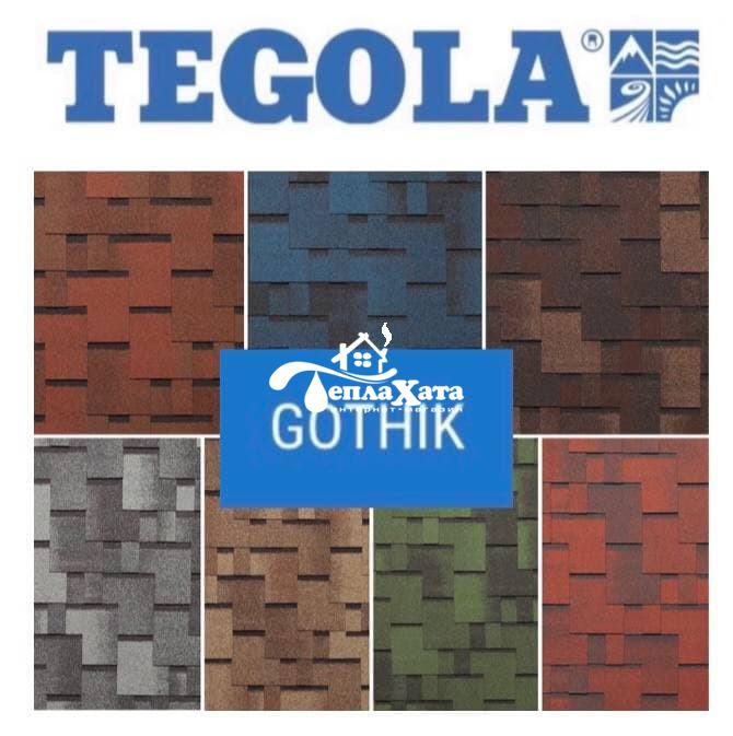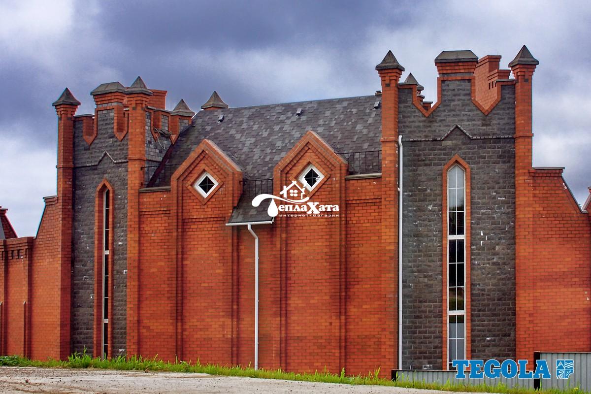 Мягкая черепица Готик – отличный вариант для тех, кто предпочитает нестандартные дизайнерские решения. Коллекция отличается оригинальной формой гонта, не характерной для остального модельного ряда. Каждый гонт мягкой черепицы имеет три лепестка разного размера прямоугольной формы. Такая особенность и монтаж внахлест дает возможность получить кровельное покрытие с нестандартным рисунком с визуальным эффектом объемности. Красивейшие природные оттенки покрытия позволяет кровельному покрытию гармонично вписаться в ландшафт. Неповторимая игра света возникает благодаря чередованию темных и светлых оттенков цвета на лепестках.В форме нарезки Тегола Готик предлагается семь цветов: Красный гранит, Береста, Осенний клен, Кедр, Альпийский сланец, Хвоя, Синяя ночь.