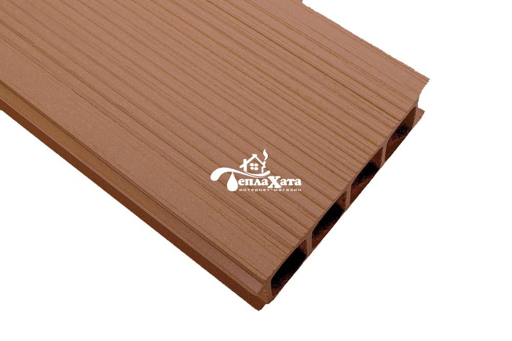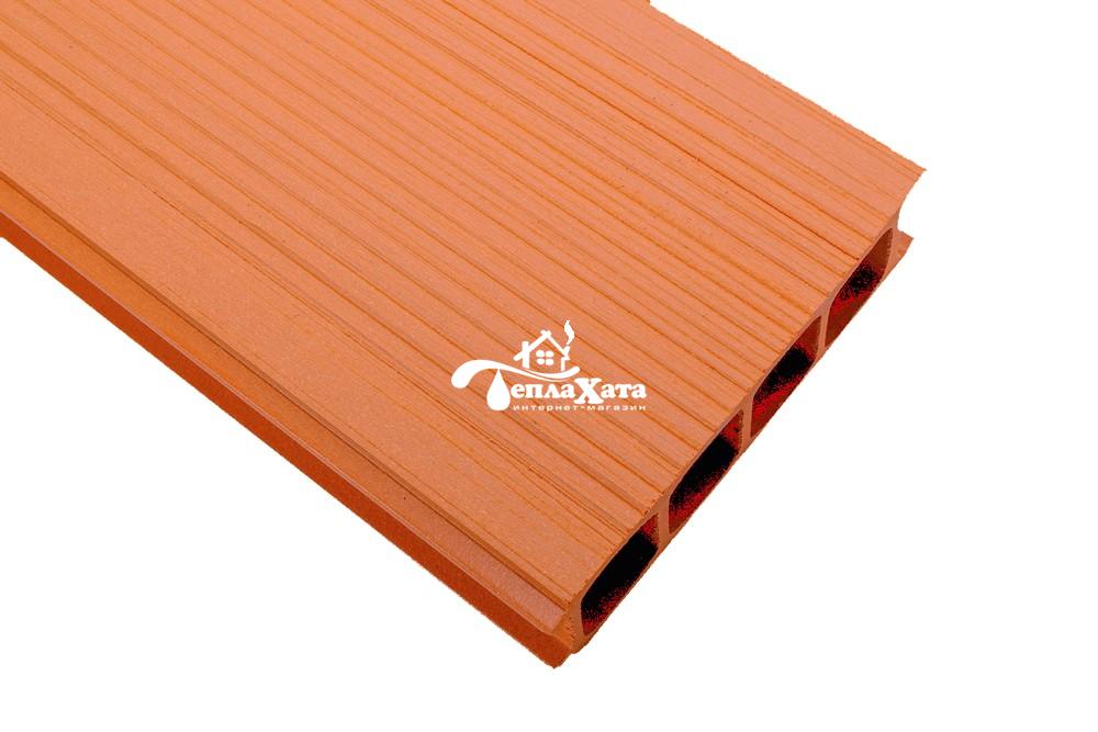 Терраса, собранная из террасных досок с рифленой поверхностью не будет скользить даже во влажном состоянии после дождя или уборки. Долгие годы она будет радовать Вам глаз своим привлекательным видом не требуя при этом специального ухода, так как легко поддается очищению при помощи обычных моющих средств.
