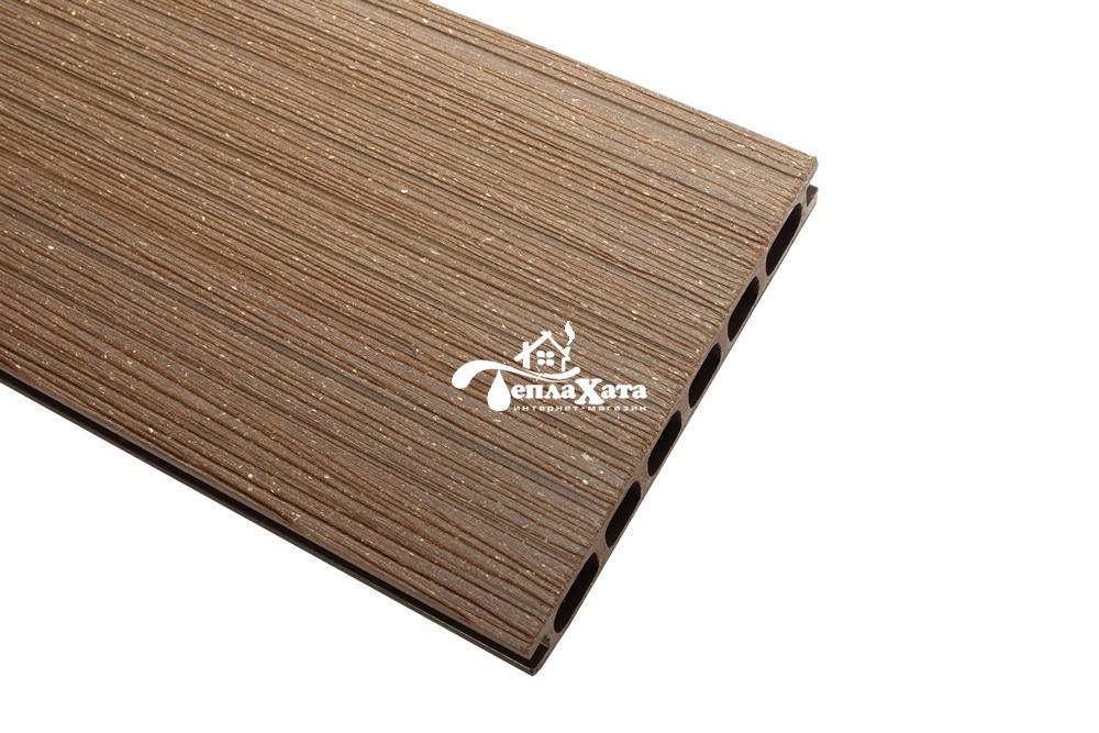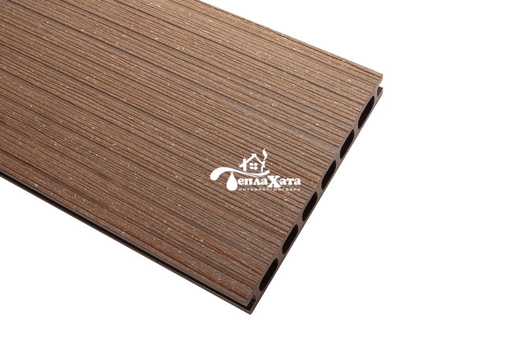 Терраса, собранная из террасных досок с рифленой поверхностью не будет скользить даже во влажном состоянии после дождя или уборки. Долгие годы она будет радовать Вам глаз своим привлекательным видом не требуя при этом специального ухода, так как легко поддается очищению при помощи обычных моющих средств.