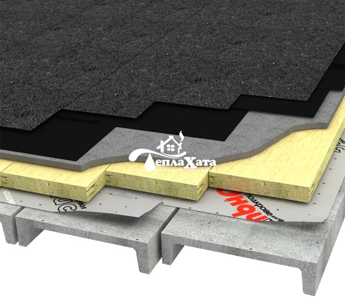 Типичное применение такой плёнки — подкровельная гидроизоляция в не утеплённых или утеплённых скатных крышах с металлическим покрытием. Она защищает чердачное помещение от влаги, которая образуется из-за конденсации кровли или осадков. Защищает подкровельное пространство от проникновения холодного воздуха и конденсата, который возникает на внутренней стороне металлической кровли. Уменьшает тепловое воздействие на кровельное покрытие в отопительный сезон и снижает риск образования наледи и сосулек.