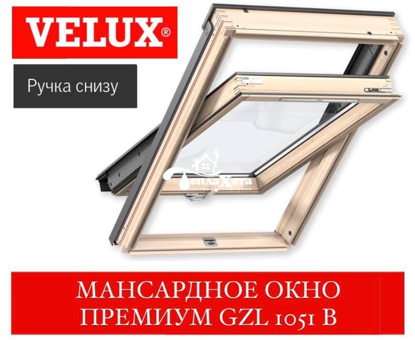 Мансардное окно с нижей ручкой открывания VELUX Standart GZL 1051 В. Модель доступна в дереве, с лаковым покрытием