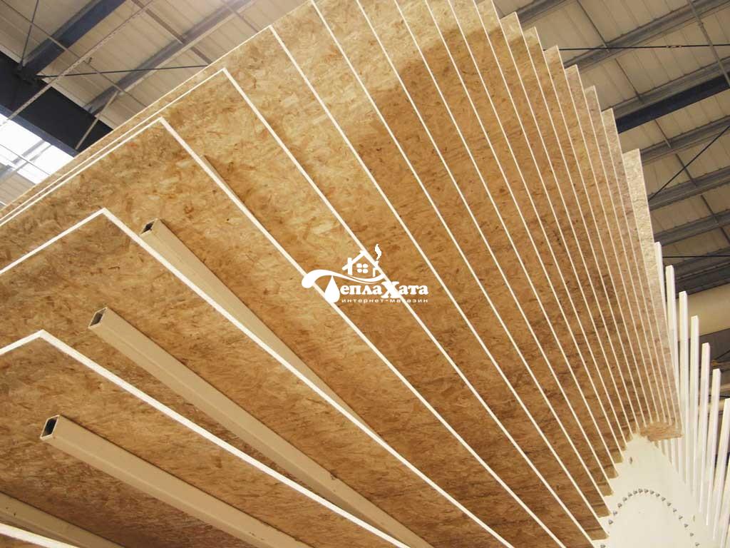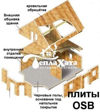 Плита OSB-3 - обладает высокой влагостойкостью и прочностью, применяется при изготовлении несущих конструкций, внутренней обшивки стен, наружной облицовки фасадов, опалубки при производстве бетонных работ, сплошной обрешетки кровли, сплошного настила полов, двутавровых балок в деревянном домостроении, а также при производстве термопанелей и SIP (СИП)-панелей.