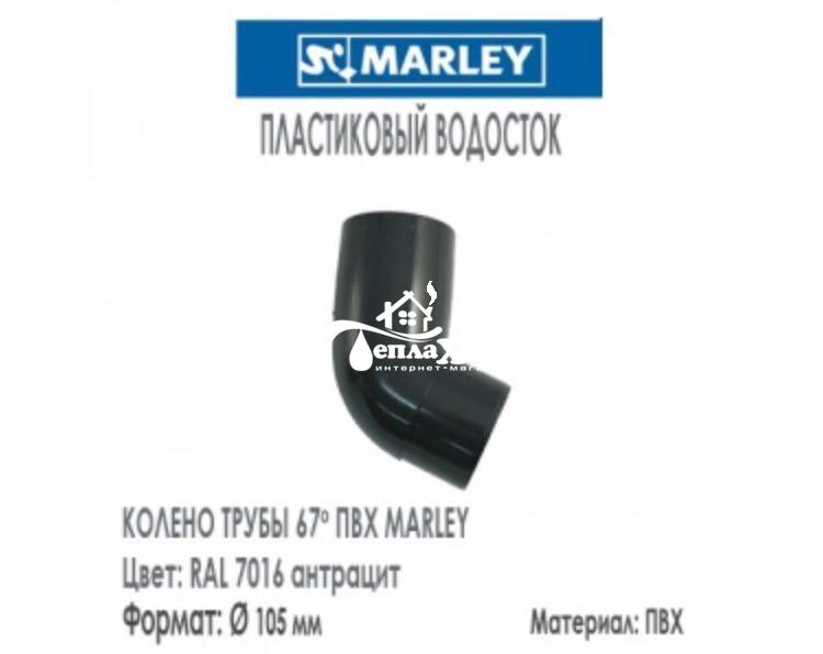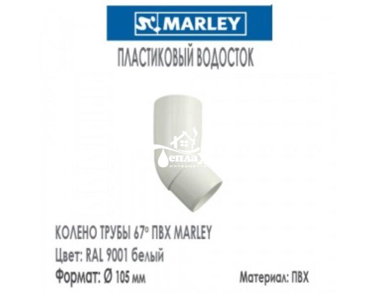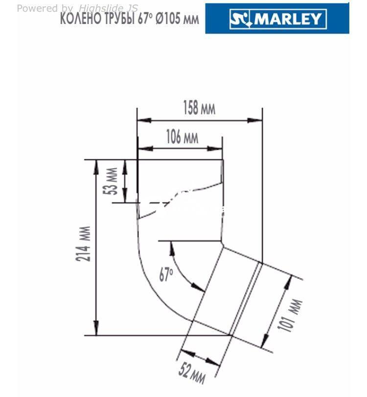 Колено трубы 67 градусов применяется для выполнения перехода от воронки, установленной на водосточном желобе (в плоскости карниза кровли) в водосточной трубе, закрепленной на фасадной стене.