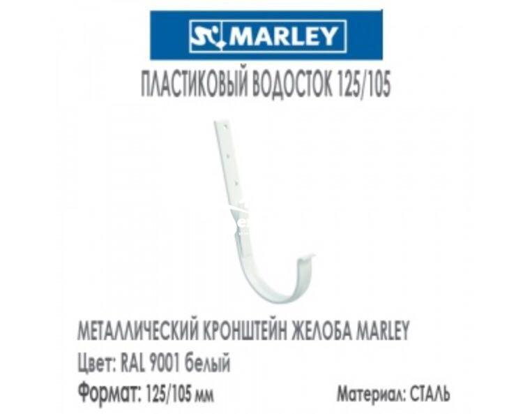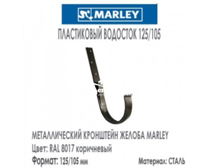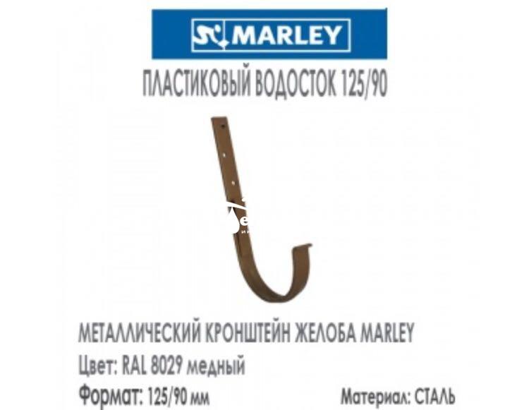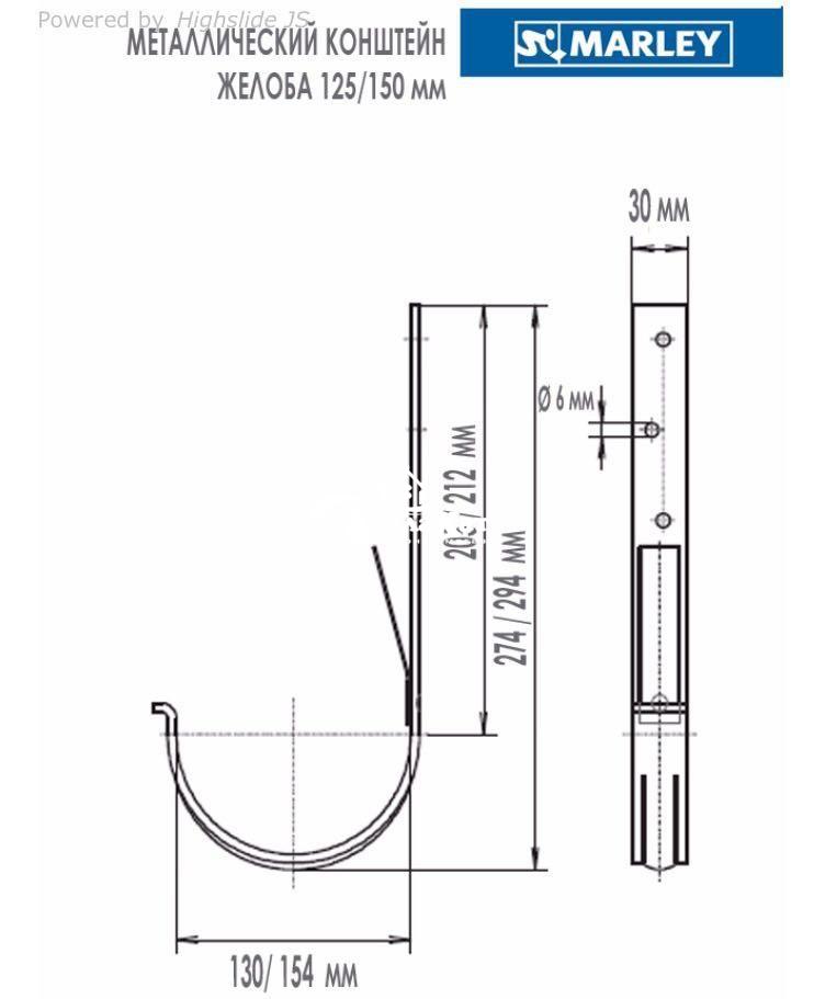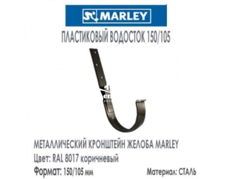 Металлический кронштейн для водосточного желоба Марлей выполнен из оцинкованной стали толщиной 4 мм и покрыт полиуретановым защитным цветным покрытием. Длина ножки кронштейна в 205 мм позволяет загнуть ее под требуемым углом на любые кровельные конструкции, при этом соблюдая разуклонку.