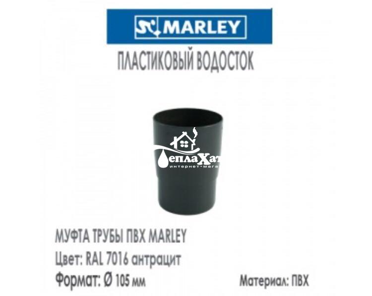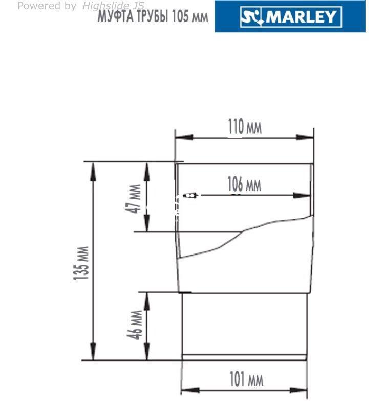 Муфта трубы применяется для соединения в единую линию двух отрезков водосточных труб. Непосредственно водосточные трубы в системе Марлей не имеют предусмотренных раструбков, и соединяться двуг с другом они должны при использовании данного элемента.