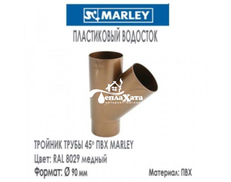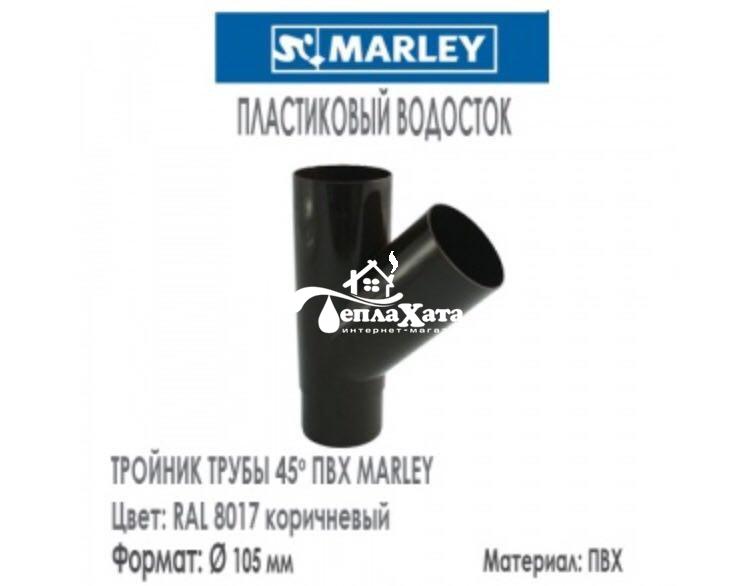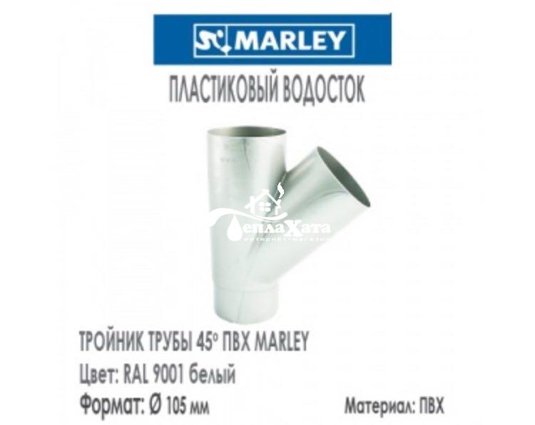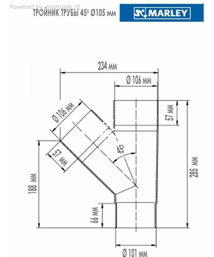 Тройник трубы монтируется в вертикальную водосточную трубу, он имеет раструбок и позволяет подвести вторую трубу под углом 45 градусов также, соединение выполняется в интегрированный в тройник раструбок.