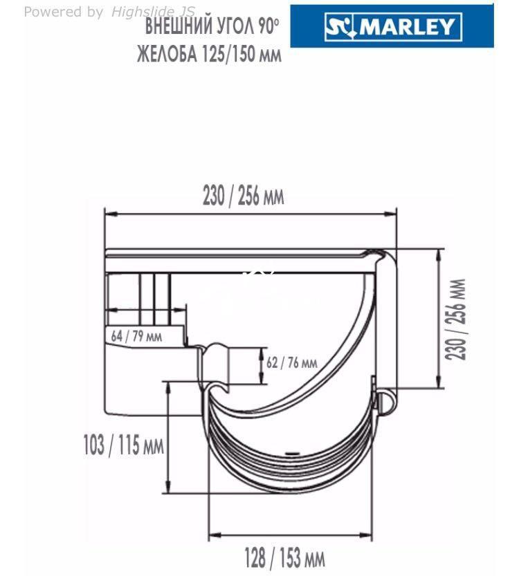 Угол внутренний желоба имеет как встроенный уплотнитель, подразумевающий герметизацию стыка желобов, так и на нем есть специальные отметки и ограничители, которые компенсируют линейное расширение. Соединитель желоба пластиковой системы Марлей обеспечивает не только герметизацию стыка, но компенсирует линейное расширение двух длинных водосточных желобов при изменении температуры окружающей среды.