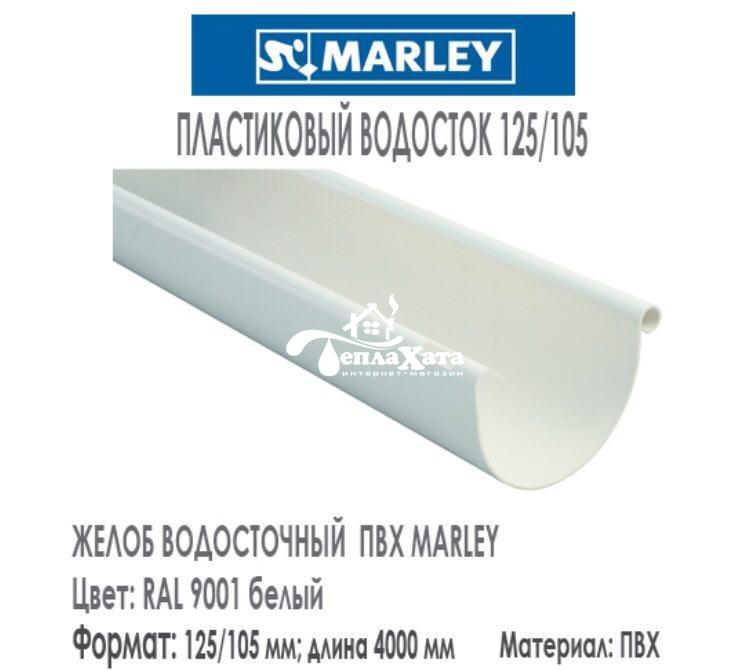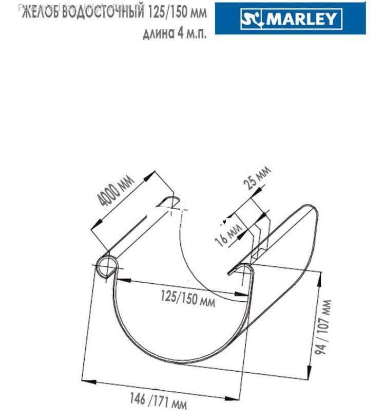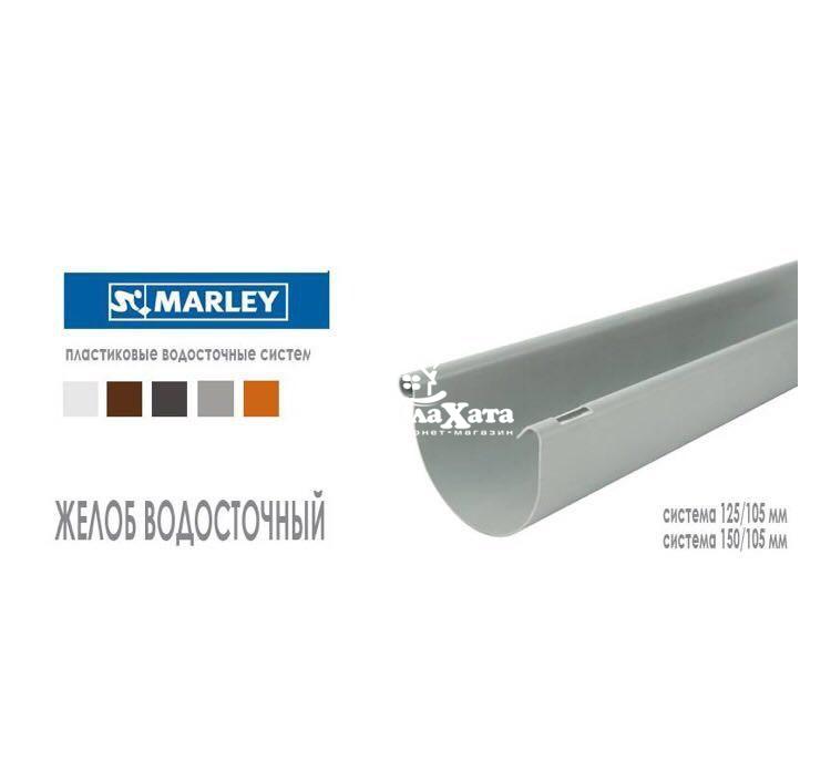 Водосточный желоб в пластиковой системе MARLEY доступен в двух типоразмерах: диаметр 125 мм и диаметр 150 мм.