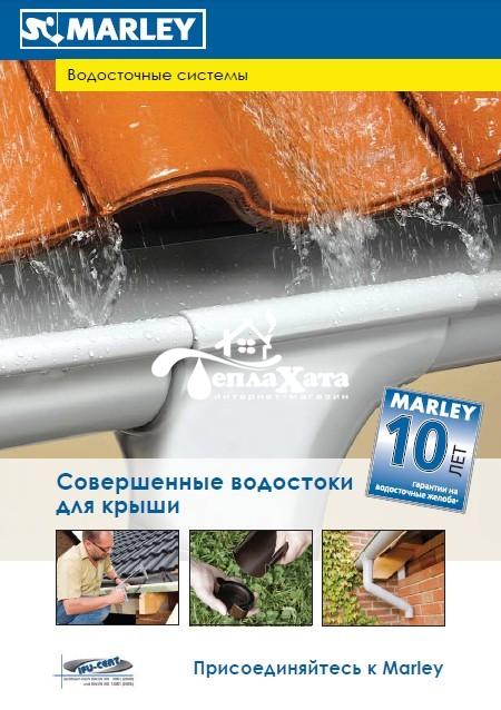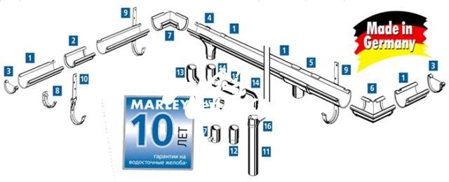 Система водостоков Марлей исключает применение клеевых составов - все соединения на защелках, подразумевающих простой ремонт при необходимости и простую замену той или иной детали.