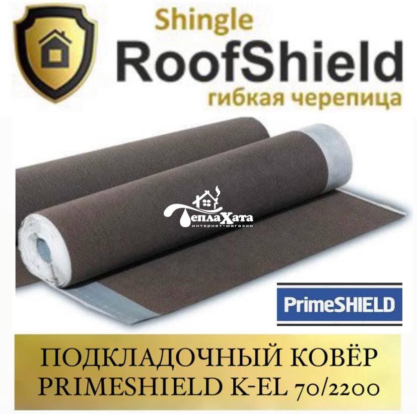 Подкладочный ковер PRIMESHIELD К-EL 70/2200 - это рулонный кровельный материал на стекловолокнистой основе, предназначенный для использования в качестве первичного слоя изоляции скатной кровли для битумной черепицы как основного кровельного покрытия.