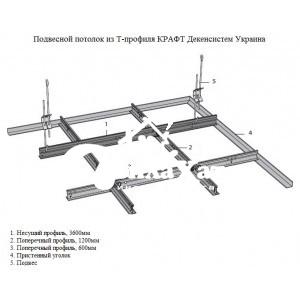 Система подвесного потолка состоит из профилей, спиц и карт размером 600*600 мм или 1200*600 мм.