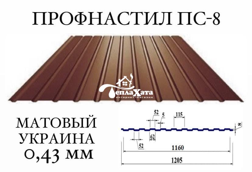 Профнастил ПС-8 (Украина), мат 0,43 мм (Профнастил)