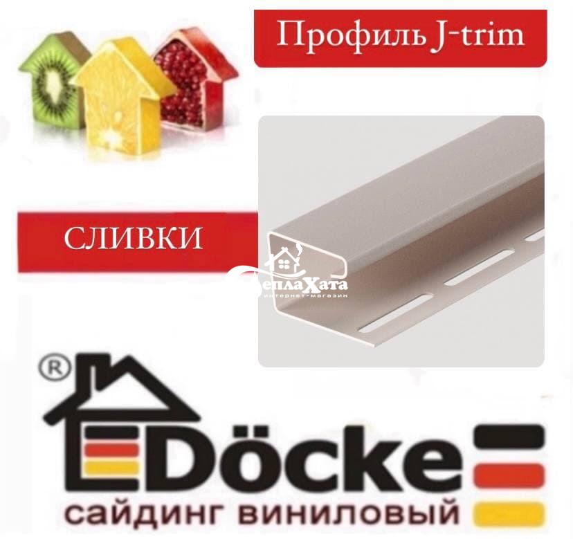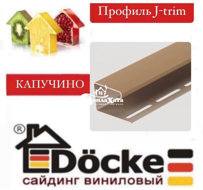 J- профиль используется для закрытия панелей сайдинга сбоку, при обшивке откосов (наборка сайдингом) и при закрытии косого верха стен и фронтонов. Внутренняя ширина J- профиля равна толщине панели.
