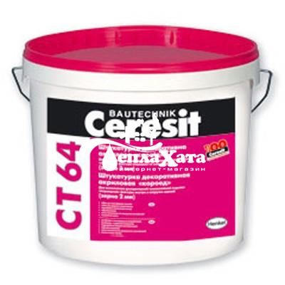 CERESIT CT 64 - акриловая тонкослойная декоративная штукатурка «камешковая» с зернистой и бороздчатой фактурой (зерно 2 мм)