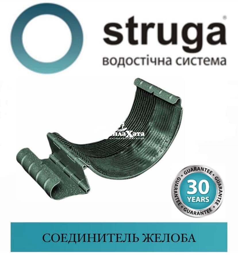 Соединяетель желоба применяется при соединении двух желобов между собой и при соединении желоба с внутренним или наружным углом. Следует помнить про зазор 2-3 мм между желобом в соединителем с целью компенсации изменения длины, которая возникает при температурном расширении.