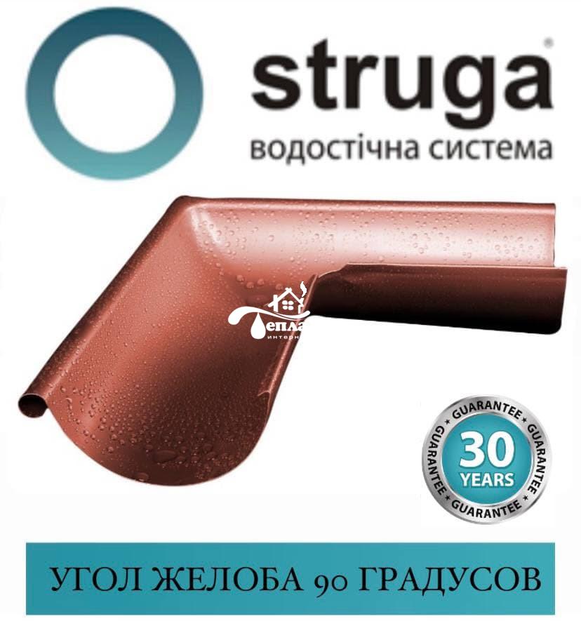 Универсальный (внутренний и наружный угол 90 градусов) соединяется с желобом при помощи соединителя желоба с уплотнителем. По обеим сторонам угла необходимо установить кронштейны желоба.