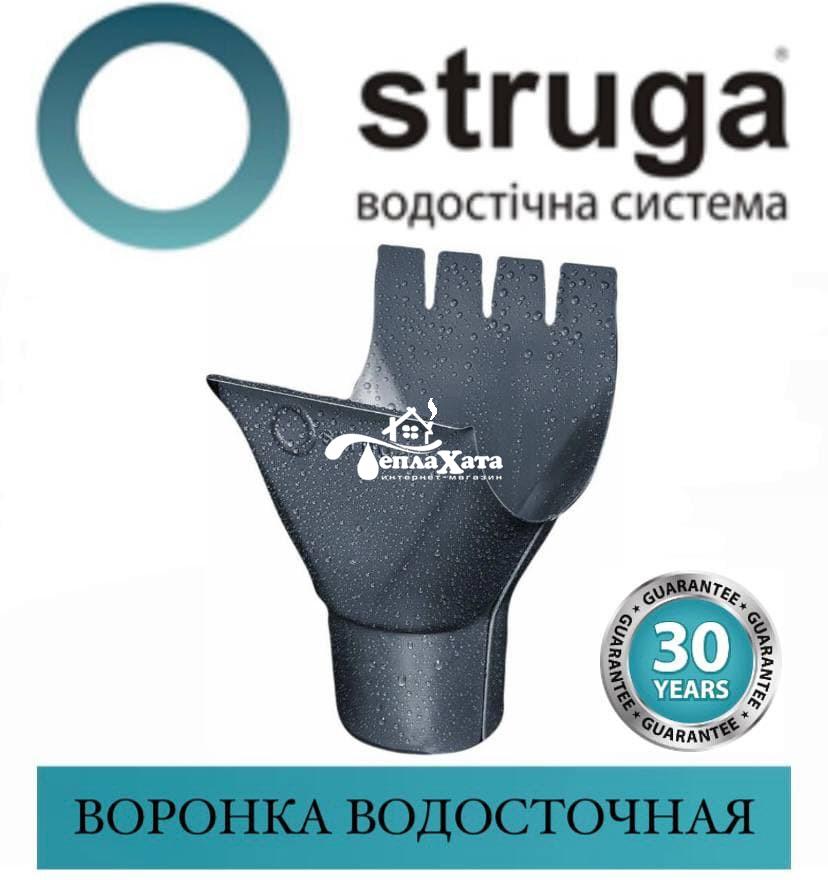 Лейка предназначена для отвода воды из желоба в водосточную трубу. Расстояние между двумя воронками на одном скате не должно превышать 20 метров. Расчет воронок производится исходя из площади кровельных скатов - одна воронка системы 125/90 мм отводит воду со ската, площадью до 100 м2.