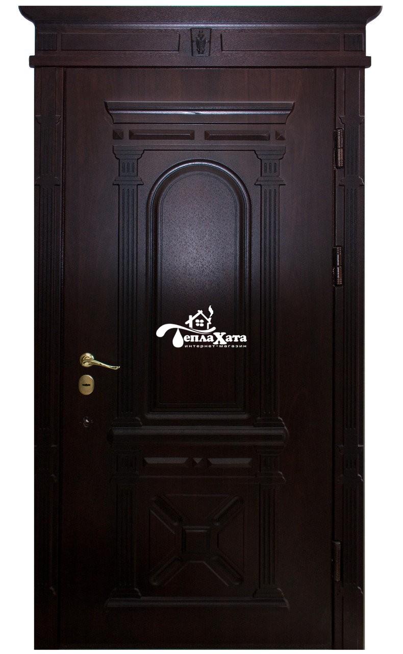 Декоративное покрытие: наружный стальной лист 2 мм, покраска порошковая, внутри фрезерованная плита МДФ 16 мм с покрытием ПВХ под структуру дерева, цвет орех коньячный